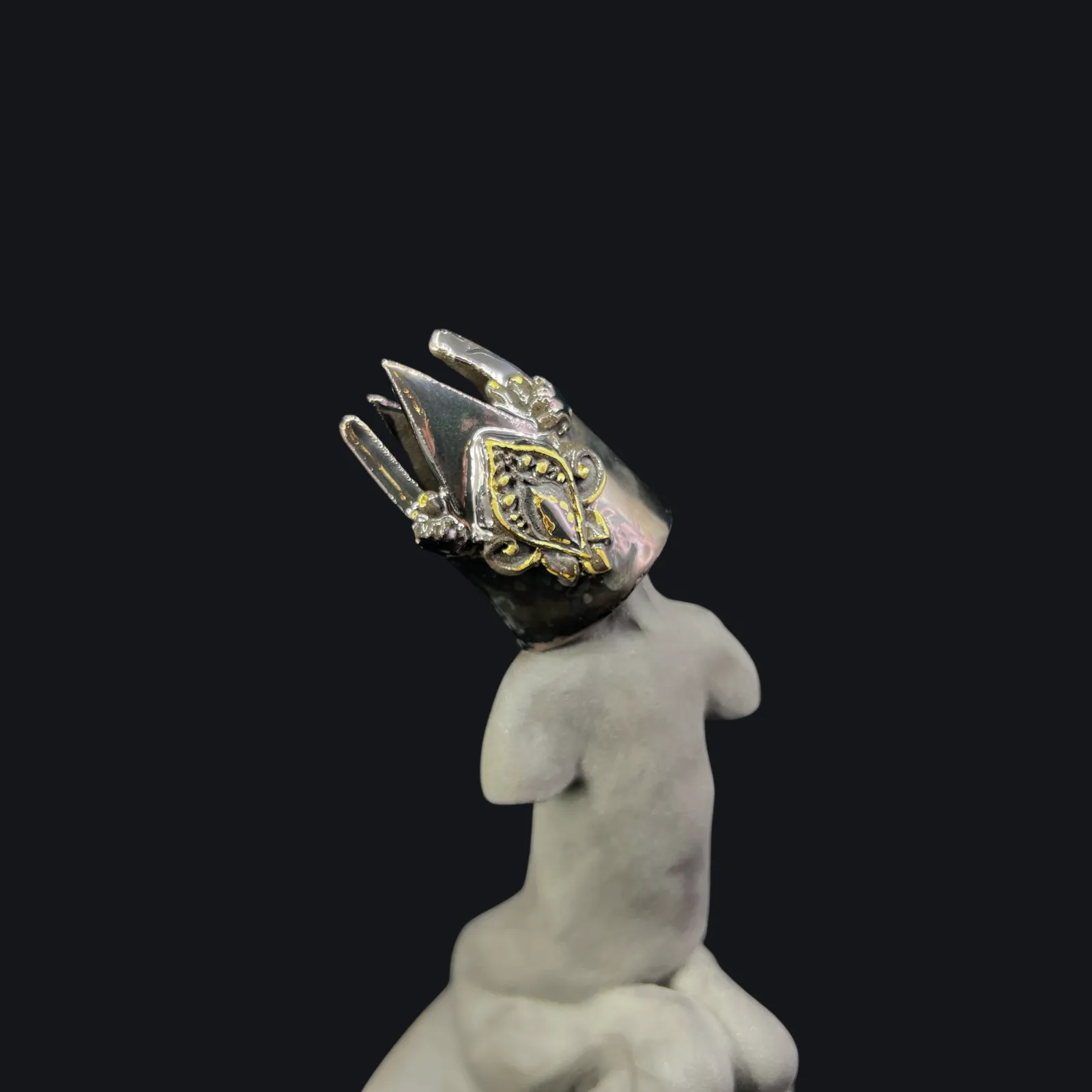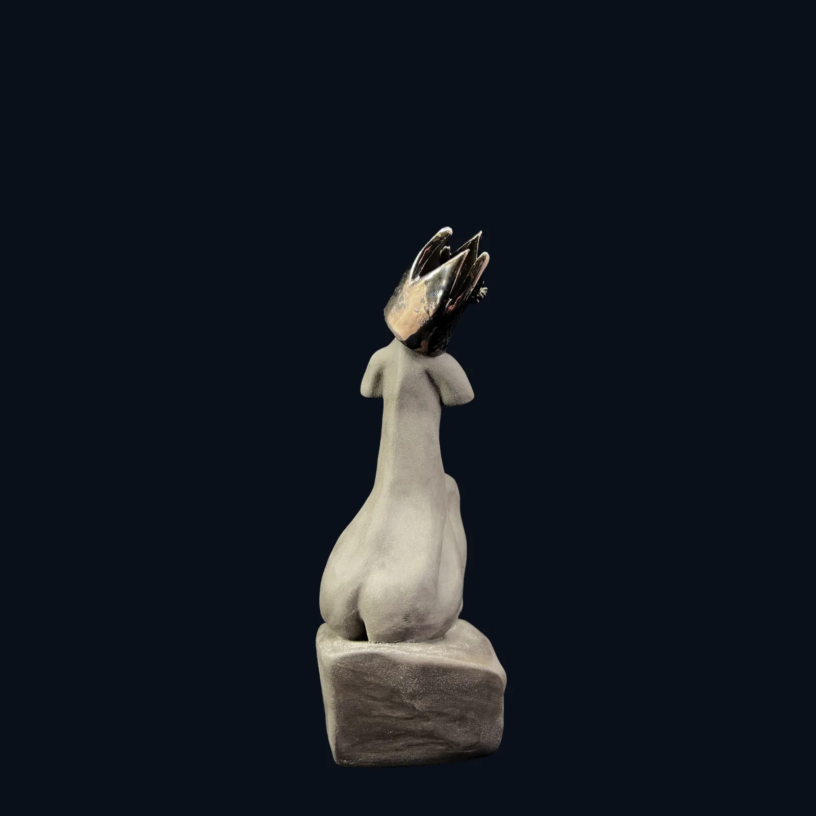 Tviskanti karūna kontrastuoja su asketišku, grubių linijų kūnu.